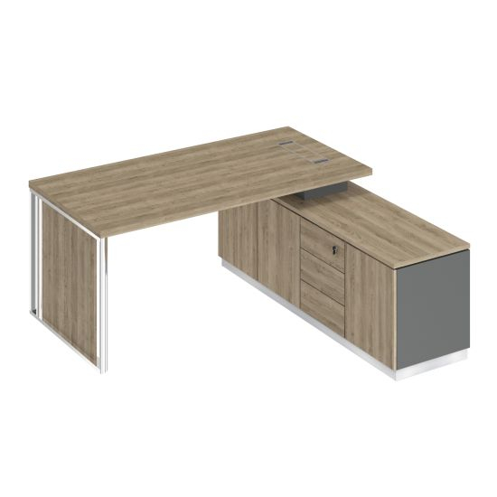 БР 107 ДС АР ДС Стол руководителя на опорной тумбе (левый/правый) с декоративной вставкой (180х180х75), дуб гладстоун светлый /антрацит премиум/дуб гладстоун светлый